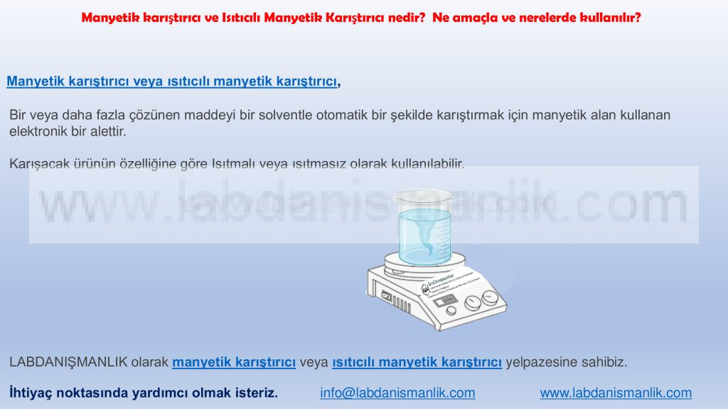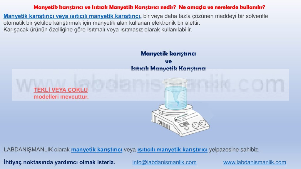 LABDANIŞMANLIK olarak manyetik karıştırıcı veya ısıtıcılı manyetik karıştırıcı yelpazesine sahibiz. İhtiyaç noktasında yardımcı olmak isteriz.